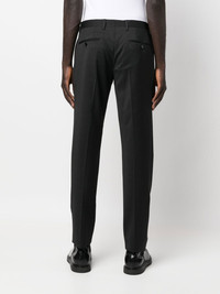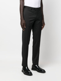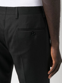 tailored stretch-wool trousers dark grey stretch-wool tailored cut pressed crease concealed fly and button fastening belt loops two diagonal pockets to the sides two rear button-fastening jetted pockets Made in Italy Composition Lining: Viscose 100%, Polyester 65%, Cotton 35% Outer: Wool 98%, Spandex/Elastane 2% SIZE & FIT Model measurements Height 6 ft 2 in(1.87 m) Bust/Chest 36.41 in(92.5 cm) Hips 37 in(94 cm) Waist 29.52 in(75 cm) Measurement FRONT RISE 9.84 in(25 cm) INSIDE LEG 35.82 in(91 cm) HIPS 38.58 in(98 cm)