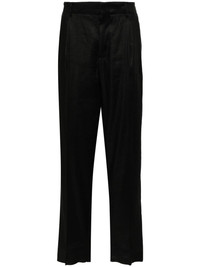 tapered-leg twill trousers Highlights - Black - Stretch-linen - Twill weave - Belt loops - Pleat detailing - Pressed crease - Concealed fly and button fastening - Tapered leg - Raw-cut hem - Two side slit pockets - Two rear patch pockets Made in Italy Composition Outer: Linen/Flax 55%, Viscose 42%, Elastane 3% Lining: Viscose 100% SIZE & FIT Model measurements Height 6 ft 2 in(1.89 m) Bust/Chest 37.79 in(96 cm) Hips 37 in(94 cm) Waist 29.92 in(76 cm) FittingInformation Designed for a tapered leg, offering a loose unrestricted fit over the leg with a closer fit towards the ankle The unfinished hems allow for the length to be altered Made from a midweight stretch fabric, this piece offers elasticity and flexibility when worn This piece fits true to size – take your usual size