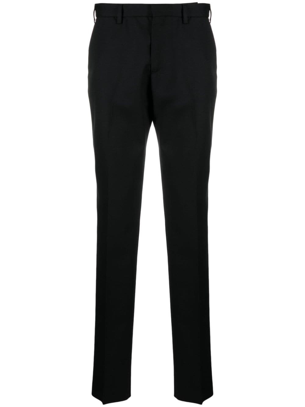 twill-weave wool tailored trousers Highlights - Black - Wool - Twill weave - Pressed crease - Belted waist tabs - Belt loops - Concealed fly and button fastening - Two side inset pockets - Two rear flap pockets - Tailored cut Made in Italy Composition Outer: Wool 100% Lining: Viscose 100% SIZE & FIT Model measurements Height 6 ft 2 in(1.87 m) Bust/Chest 38.18 in(97 cm) Hips 36.61 in(93 cm) Waist 29.13 in(74 cm) FittingInformation Designed for a slim fit, offering a comfortable fit that sits just away from the leg The adjustable tabs allow for fitted preferences Made from a midweight non-stretch fabric This piece fits true to size – take your usual size