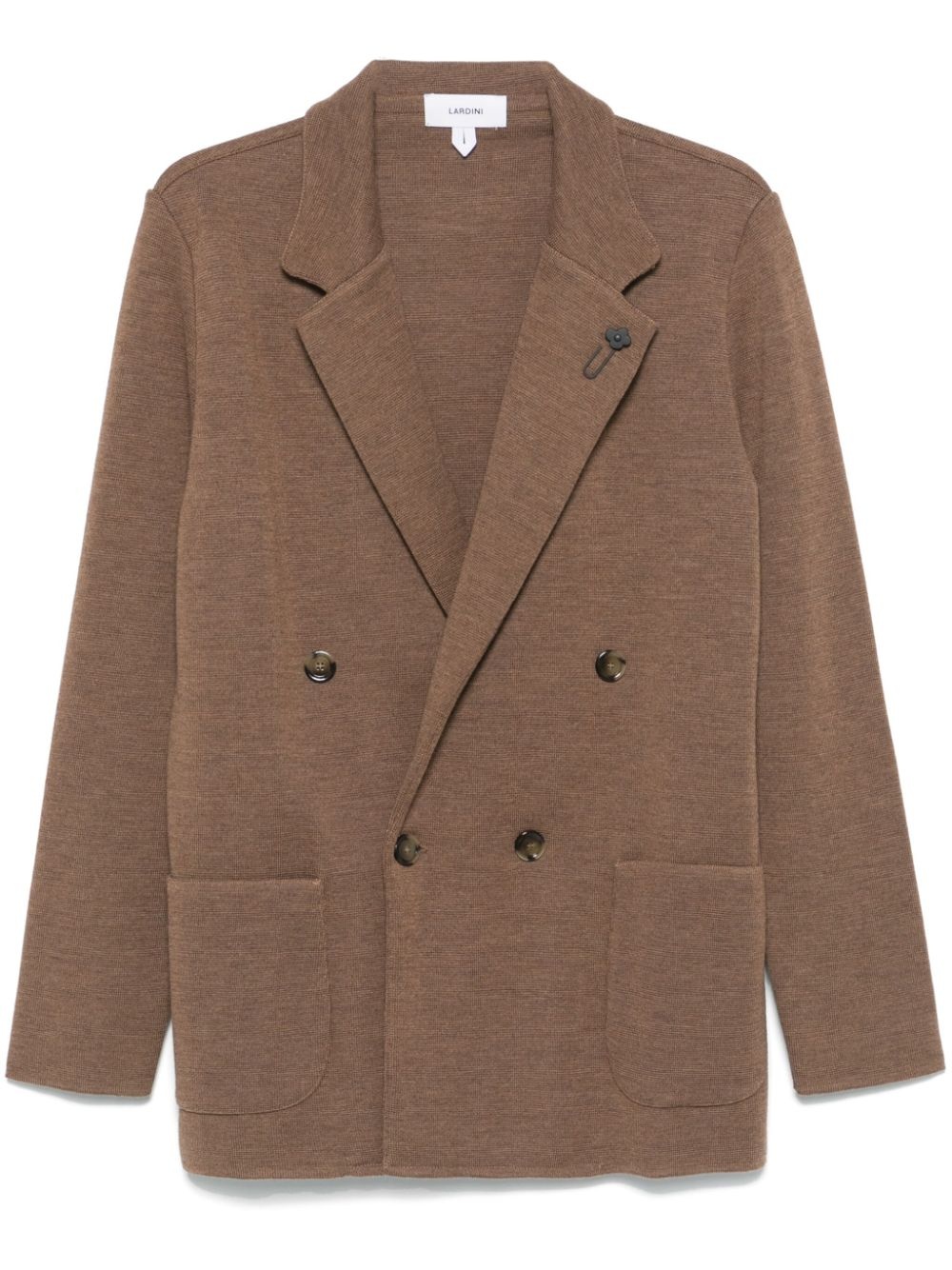 virgin wool blazer Highlights - Walnut brown - Virgin wool - Knitted construction - Double-breasted button fastening - Brooch detail - Notched lapels - Long sleeves - Two front patch pockets - Unlined - Ribbed cuffs and hem Made in Italy Composition Virgin Wool 100% SIZE & FIT Model measurements Height 6 ft 2 in(1.87 m) Bust/Chest 37.79 in(96 cm) Hips 37.79 in(96 cm) Waist 30.31 in(77 cm) FittingInformation Designed for a relaxed fit, this piece allows for comfort and movement when worn Washing instructions Dry Clean Only