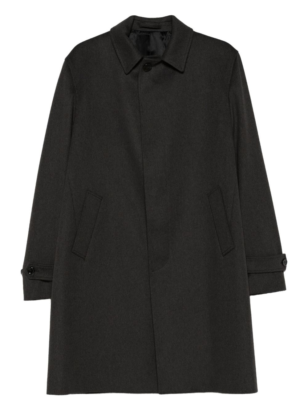 virgin-wool coat Highlights - Dark grey - Front button fastening - Long sleeves - Buttoned cuffs - Front welt pockets Made in Italy Composition Virgin Wool 100% Washing instructions Read Manufacturer Guidelines