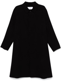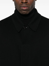 wool coat Highlights - Black - Virgin wool - Felted finish - Concealed front button fastening - Classic collar - Long sleeves - Two side slit pockets - Central rear vent - Unlined - Straight hem Made in Italy Composition Lining: Cotton 100% Outer: Virgin Wool 100% SIZE & FIT Model measurements Height 6 ft 0 in(1.84 m) Bust/Chest 35.82 in(91 cm) Hips 37 in(94 cm) Waist 28.34 in(72 cm) FittingInformation Designed to be unstructured, offering a loose fit throughout The vented hem offers movement at the rear Made from a midweight non-stretch fabric