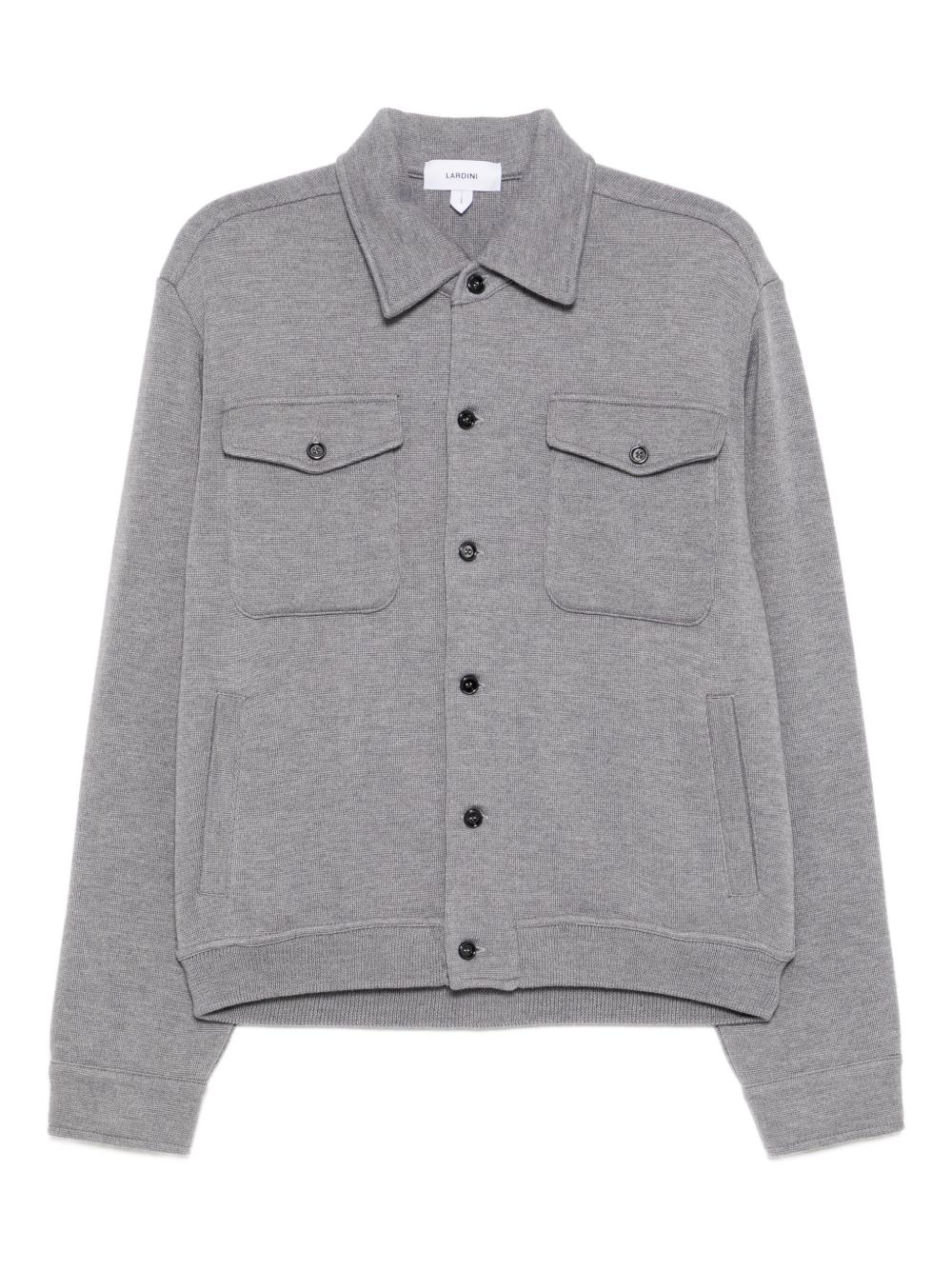 wool shirt jacket Highlights - Stone grey - Front button fastening - Two chest flap pockets - Two side welt pockets - Long sleeves Made in Italy Composition Virgin Wool 100%
