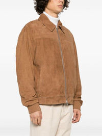 zip-up suede bomber jacket