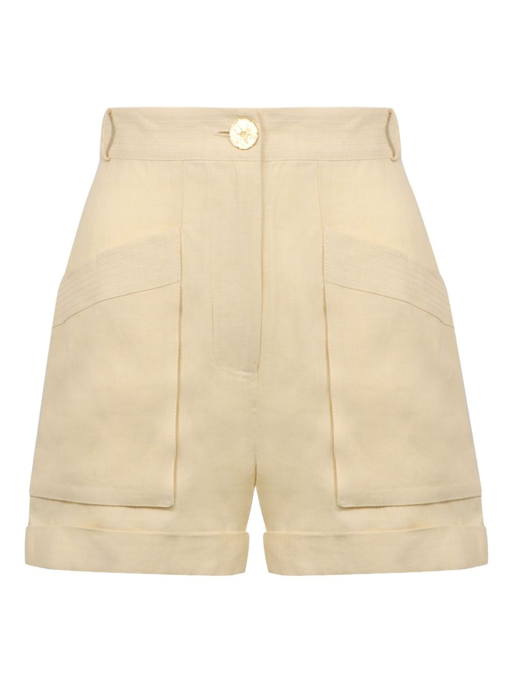 pleated utility shorts Highlights - Light beige - Pleat detailing - Front pockets - Rolled cuffs - Back patch pockets Made in France Composition Linen/Flax 100%