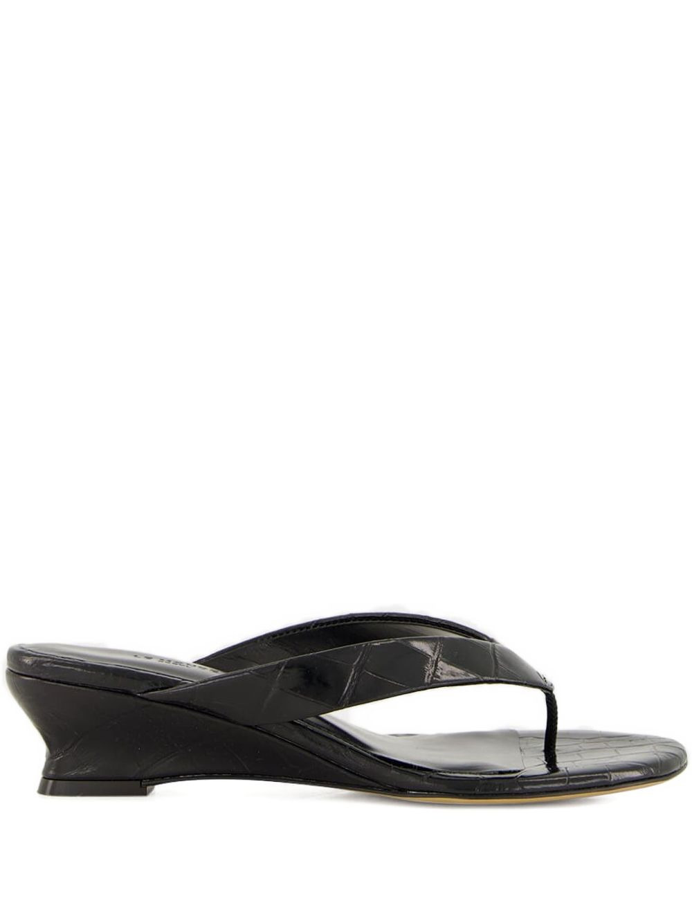 40mm micro wedge thong sandals Highlights - Black - Calf leather - Micro wedge heel - Thong design - Cross strap - Crocodile effect Made in Italy Composition Outer: Calf Leather 100% Lining: Calf Leather 100% Sole: Calf Leather 100% SIZE & FIT Measurement HEEL 1.57 in(4 cm)