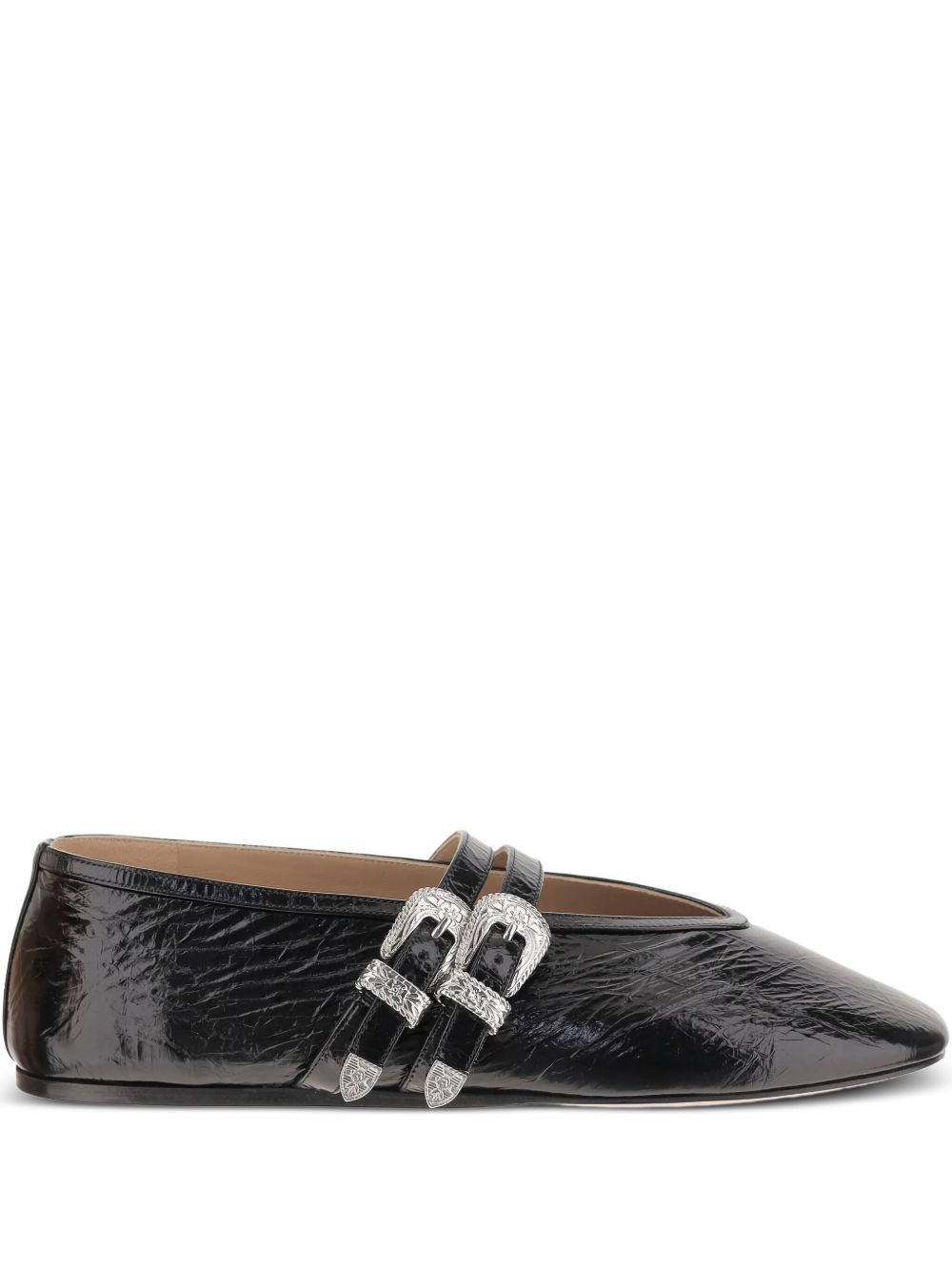 buckle-detail leather flats Highlights - Black - Leather - Buckle fastening - Round toe - Flat sole - Silver-tone buckle Made in Italy Composition Outer: Leather 100% Lining: Leather 100% Sole: Leather 100%