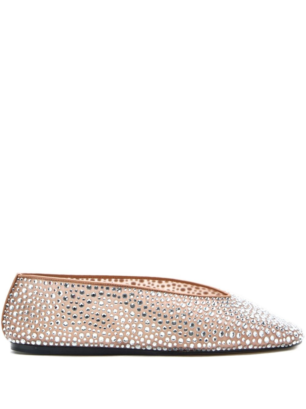 crystal-embellished ballet flats Highlights - Beige - Crystal embellishment - Round toe - Flat sole - Slip-on style Made in Italy Composition Outer: glass 100%, Leather 100%, Mesh 100% Lining: Leather 100% Sole: Leather 100%