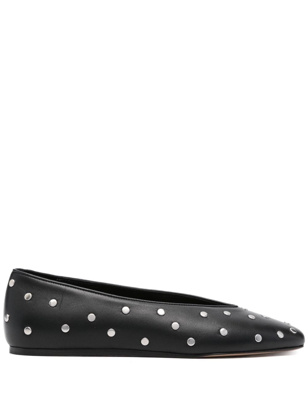 Luna stud-embellished leather ballerina shoes Le Monde Beryl showcase a bold take on the classic ballerina silhouette with this pair. Crafted from leather, they arrive in a sleek black hue and play host to an array of silver-tone stud embellishments for a striking finish. Highlights - Black - Calf leather - Stud detailing - Almond toe - Slip-on style - Flat sole Made in Italy Composition Outer: Calf Leather 100% Sole: Calf Leather 100%, Rubber 100% Lining: Calf Leather 100%