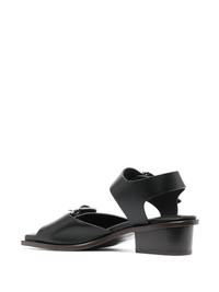 35mm double-buckle sandals These sandals by Lemaire are made of vegetable-tanned leather with a compact grain and smooth finish. Composed of a toe strap and ankle strap with silver-tone buckles, they feature in a rounded square toe, block heel, and wadded insole for added support. Highlights - Black - Leather - Open square toe - Double buckle design - Branded insole - Low block heel Imported Composition Lining: Calf Leather 100% Outer: Leather 100% Sole: Leather 100% SIZE & FIT Measurement HEEL 1.37 in(3.5 cm) Sole height 0.59 in(1.5 cm)