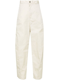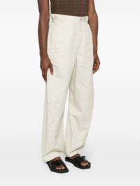 3D mid-rise straight-leg trousers Highlights - Light beige - Cotton - Gabardine weave - Belt loops - Front press-stud and zip fastening - Side buckle fastening - Two side inset pockets - Rear stud-fastening pocket - Tapered leg Imported Composition Outer: Cotton 64%, Polyamide 36% Lining: Cotton 100% SIZE & FIT Model measurements Height 6 ft 2 in(1.88 m) Bust/Chest 36.61 in(93 cm) Hips 35.82 in(91 cm) Waist 27.95 in(71 cm) FittingInformation Designed with a wide leg, offering a loose and roomy fit The adjustable tabs allow for fitted preferences Made from a midweight non-stretch fabric This piece fits true to size – take your usual size