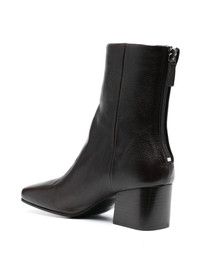 60mm leather ankle boots Crafted in Portugal, these leather ankle boots by LEMAIRE arrive with geometrical square toes for a distinguished finish. The pair is fastened with a back zip, while 60mm block heels elevate the design. Highlights - Coffee brown - Calf leather - Rear zip fastening - Square toe - Mid block heel - Ankle-length Imported Composition Sole: Calf Leather 100%, Rubber 100% Outer: Calf Leather 100% Lining: Calf Leather 100%