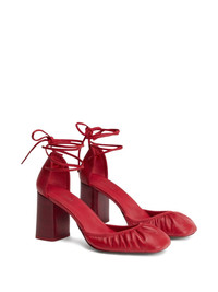 85mm Micro Ballerina 85 gathered-toe lace-up flats Highlights - Red - Gathered toe - Lace-up ankle fastening - Block heel - Sheep leather - Visible zigzag stitching Imported Composition Sole: Calf Leather 100%, Rubber 100% Outer: Calf Leather 100% Lining: Calf Leather 100%