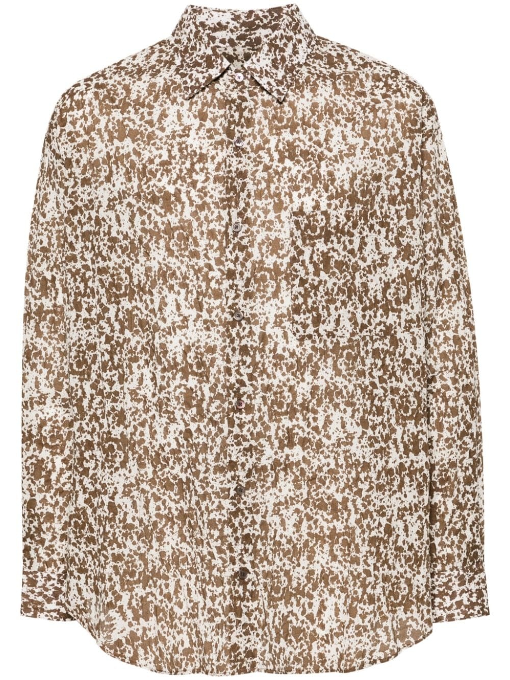 abstract-print cotton shirt Highlights - Cream white/coffee brown - Cotton - Semi-sheer construction - Crinkled finish - Abstract pattern print - Inverted pleat - Classic collar - Front button fastening - Drop shoulder - Long sleeves - Buttoned cuffs - Curved hem - Chest patch pocket Imported Composition Cotton 100%