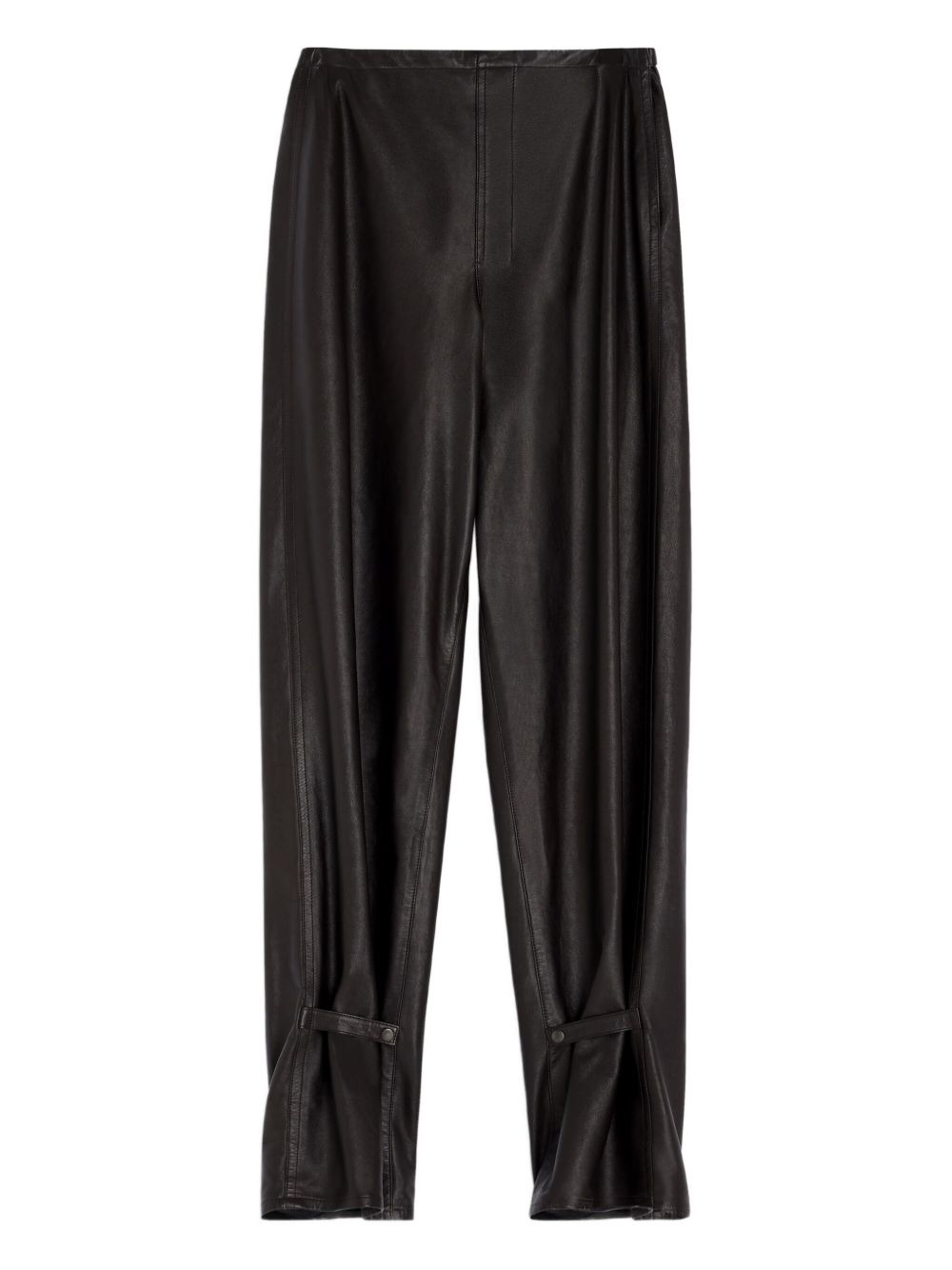 adjustable-leg leather trousers Highlights - Black - Elasticated waistband - Side zip fastening - Snap tab closure - Adjustable snap tabs - Back patch pocket Imported Composition Calf Leather 100% Washing instructions Read Manufacturer Guidelines