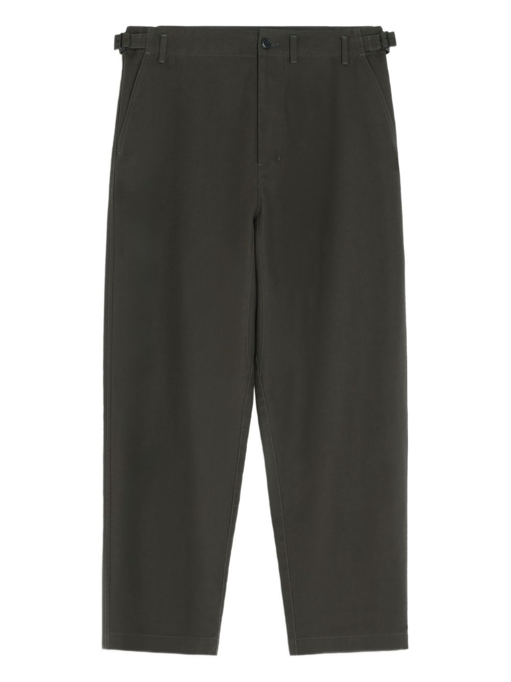 adjustable-waistband carrot trousers Highlights - Dark brown - Button closure - Slash pockets - Adjustable waistband - Belt loops Imported Composition Fabric 100% Washing instructions Read Manufacturer Guidelines