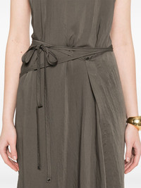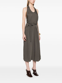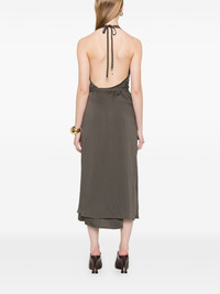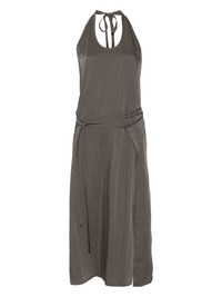 Apron midi dress Highlights - Charcoal grey - Side tie fastening - Halterneck tie fastening - Side slits - Open back Imported Composition Viscose 92%, Polyamide 8% SIZE & FIT Model measurements Height 5 ft 9 in(1.75 m) Bust/Chest 31.88 in(81 cm) Hips 34.64 in(88 cm) Waist 24.01 in(61 cm) FittingInformation Designed for a wraparound style that can be adjusted to your preference The adjustable tie waist gives a more adaptable and personalised fit Made from a lightweight non-stretch fabric Washing instructions Dry Clean Only