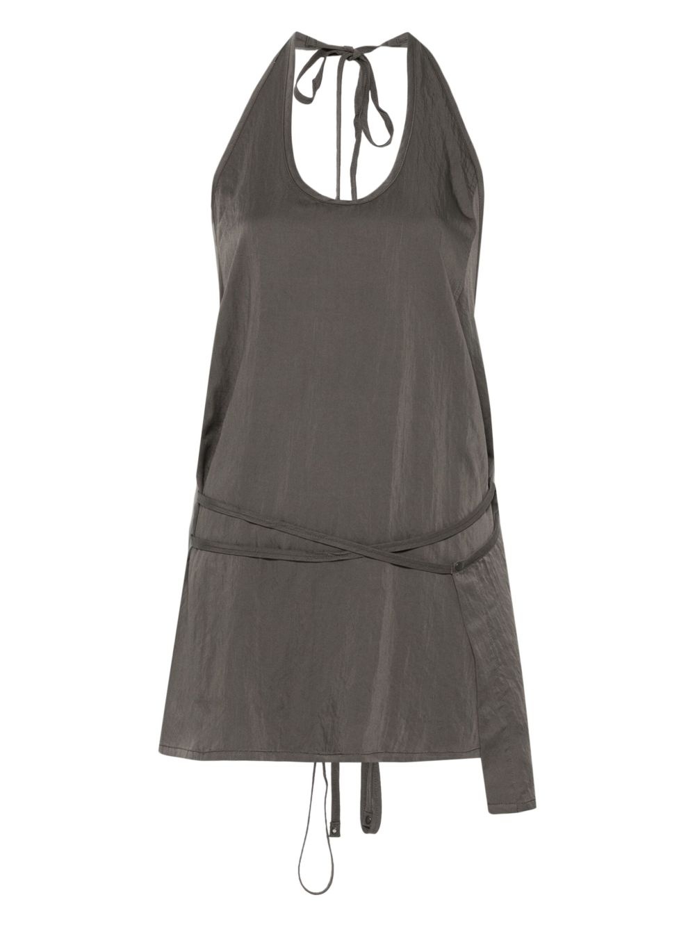 Apron top Highlights - Taupe brown - Halterneck tie fastening - Rear tie fastening - Scoop neck - Low back Imported Composition Viscose 92%, Polyamide 8% SIZE & FIT Model measurements Height 5 ft 10 in(1.79 m) Bust/Chest 35.43 in(90 cm) Hips 35.03 in(89 cm) Waist 25.19 in(64 cm) FittingInformation Designed for a relaxed fit, this piece allows for comfort and movement when worn The adjustable tie waist gives a more adaptable and personalised fit Made from a midweight non-stretch fabric
