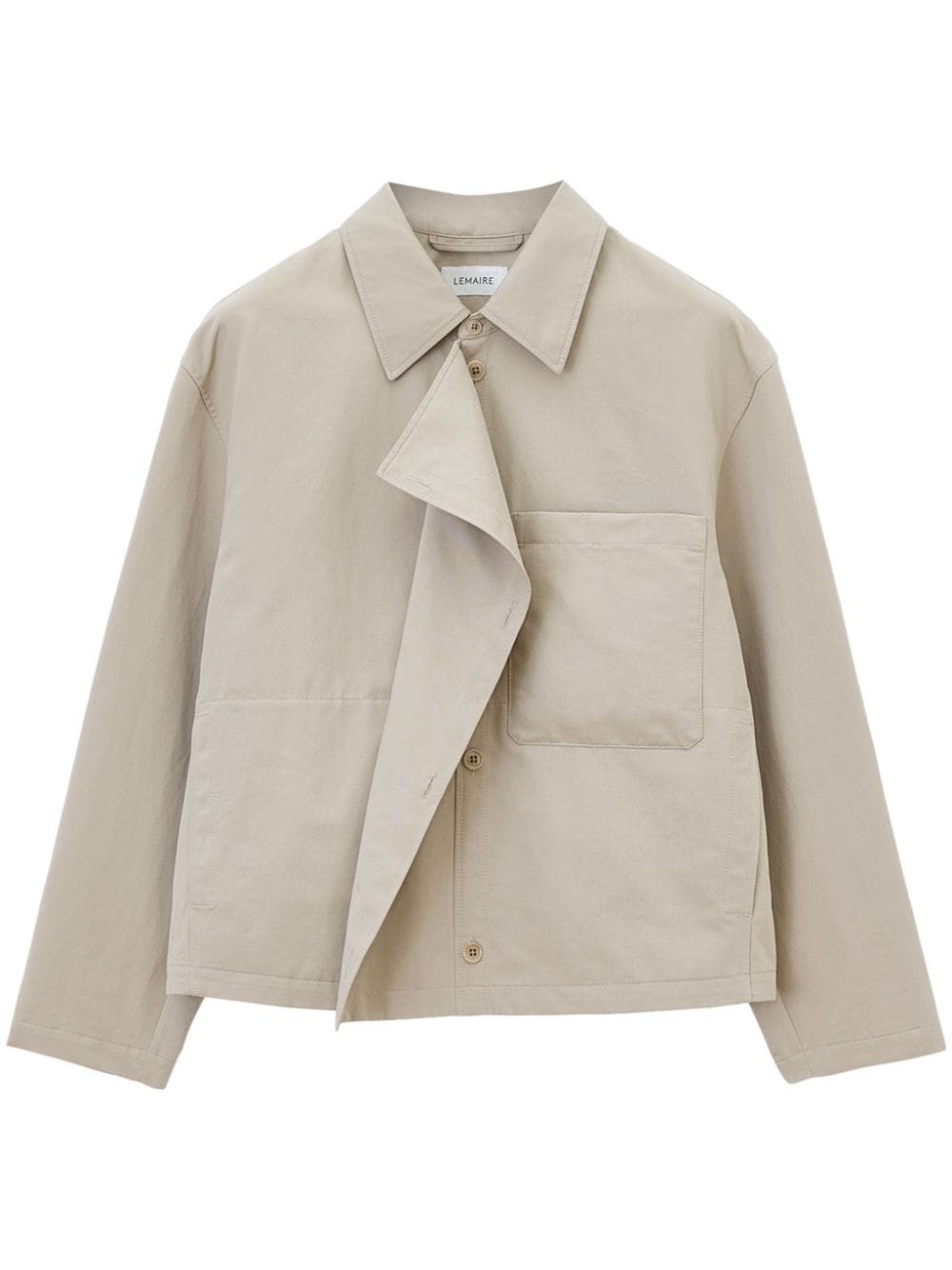 asymmetric box jacket Highlights - Sand beige - Asymmetric lapel - Tonal stitching - Spread collar - Drop shoulder - Button up fastening - Front patch pocket - Buttoned-cuff sleeves Imported Composition Fabric 100% Washing instructions Read Manufacturer Guidelines