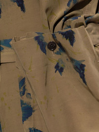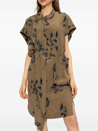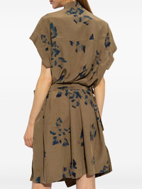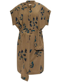 asymmetric floral-print dress Highlights - Olive green - All-over floral print - Asymmetric design - Pleat detailing - Detachable and adjustable waist belt - Round neck - Collarless - Front button fastening - Sleeveless - Front patch pocket - Knee-length Imported Composition Viscose 100%