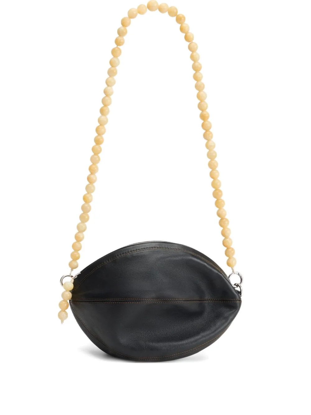 balloon-shape shoulder bag Highlights - Black - Leather - Contrast stitching - Zip fastening - Removable handle - Bead embellishment Imported Composition Lining: Silk 100% Outer: Lambskin 100%, Calcite 100%