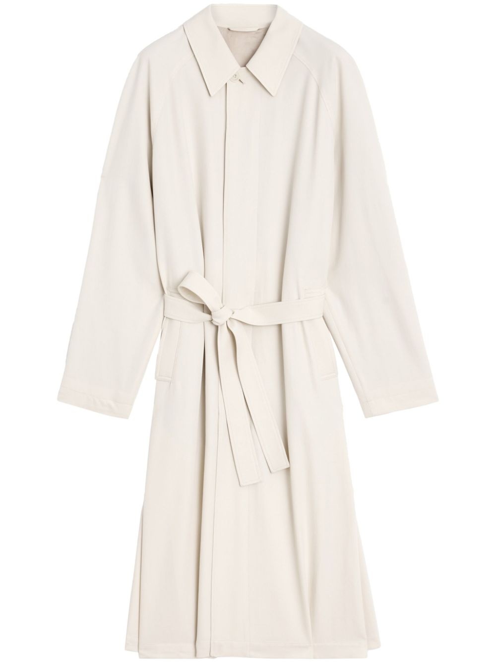 belted coat Highlights - Ecru - Concealed front button fastening - Buttoned cuffs - Two side welt pockets - Central rear vent Imported Composition Fabric 100%
