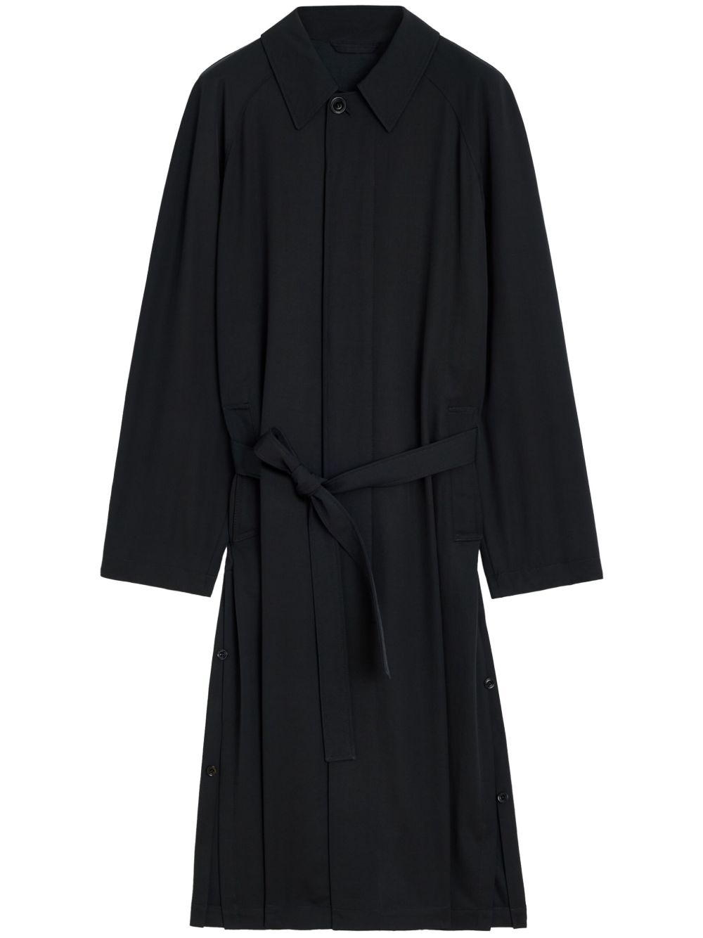 belted coat Highlights - Black - Front button fastening - Side button fastening - Buttoned cuffs - Two side slit pockets Imported Composition Fabric 100%