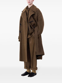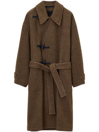 belted felted duffle coat Highlights - Cognac brown - Felted - Classic collar - Front toggle fastening - Tied waist - Long sleeves - Buttoned cuffs - Straight hem - Long length - Two side slit pockets Imported Composition Cotton 100%, Alpaca 50%, Wool 50% Washing instructions Read Manufacturer Guidelines