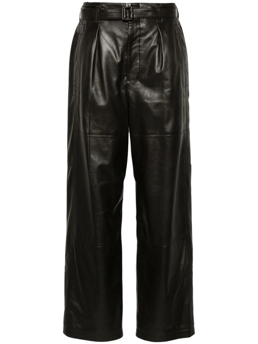 belted pants Highlights - Cedar brown - Lambskin - Belted waist - Concealed front button, hook and zip fastening - Elasticated waistband - Belt loops - Pleat detailing - Two side inset pockets - Rear patch pocket - Full lining - Straight leg Imported Composition Lining: Cotton 51%, Viscose 49% Outer: Lamb Skin 100% SIZE & FIT Model measurements Height 5 ft 10 in(1.77 m) Bust/Chest 32.28 in(82 cm) Hips 35.03 in(89 cm) Waist 25.19 in(64 cm) FittingInformation Designed with a wide-leg cut, these trousers allow for a close fit at the waist and offer a loose and roomy fit over the leg The belt offers adjustability for fitted preferences Soft leather has a supple and smooth construction offering some flexibility This piece fits true to size – take your usual size