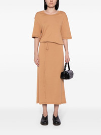 belted rib T-shirt dress Highlights - Light brown - Cotton - Round neck - Drop shoulder - Short sleeves - Detachable waist belt - Straight hem Imported Composition Cotton 100% SIZE & FIT Model measurements Height 5 ft 9 in(1.76 m) Bust/Chest 29.13 in(74 cm) Hips 33.07 in(84 cm) Waist 22.83 in(58 cm) FittingInformation Designed to be unstructured, offering a loose fit throughout The adjustable tie waist gives a more adaptable and personalised fit Made from a midweight non-stretch fabric, this piece offers minimal elasticity when worn This piece fits true to size – take your usual size
