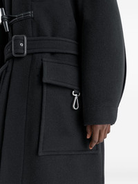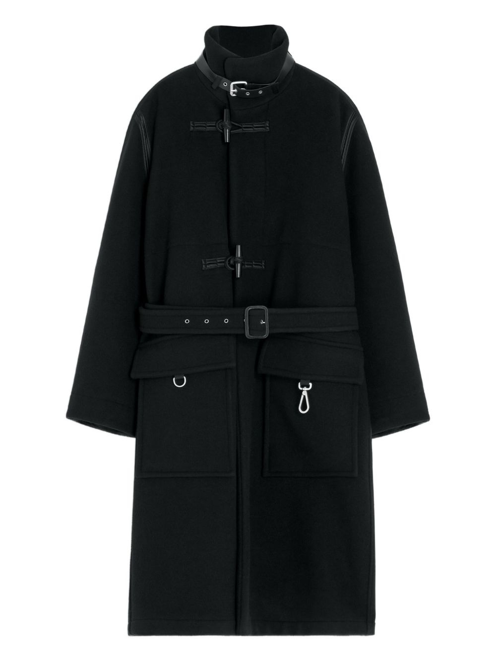 belted toggle-fastening coat Highlights - Black - Satin piping - Toggle fastening - Leather belt - Patch pockets - Carabiner clasp Imported Composition Fabric 100% Washing instructions Read Manufacturer Guidelines