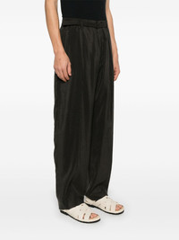 belted trousers Highlights - Coffee brown - Concealed front button, hook and zip fastening - Elasticated waistband - Two side slit pockets - Rear button-fastening jetted pocket Imported Composition Silk 76%, Polyamide 24% SIZE & FIT Model measurements Height 6 ft 2 in(1.87 m) Bust/Chest 36.41 in(92.5 cm) Hips 35.43 in(90 cm) Waist 29.52 in(75 cm) FittingInformation Designed with a wide leg, offering a loose and roomy fit The partially elasticated waistband offers increased movement and comfort at the waist Made from a midweight non-stretch fabric Washing instructions Machine Wash