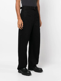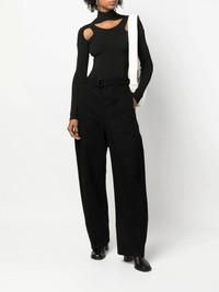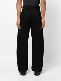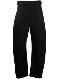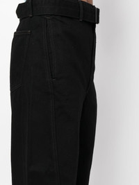 belted wide-leg trousers Reflecting the brand's carefree Parisian style, Lemaire presents these jeans. This high-waisted, belted pair is constructed from cotton in a dark hue, falling into a wide leg. Imported Composition Outer: Cotton 100% Lining: Cotton 100% SIZE & FIT Model measurements Height 5 ft 11 in(1.8 m) Bust/Chest 31.49 in(80 cm) Hips 35.82 in(91 cm) Waist 24.8 in(63 cm) FittingInformation This piece fits true to size. We recommend you get your regular size Designed for a slim fit at the waist and loose over the leg Made with a mid-weight non-stretch fabric Washing instructions Machine Wash