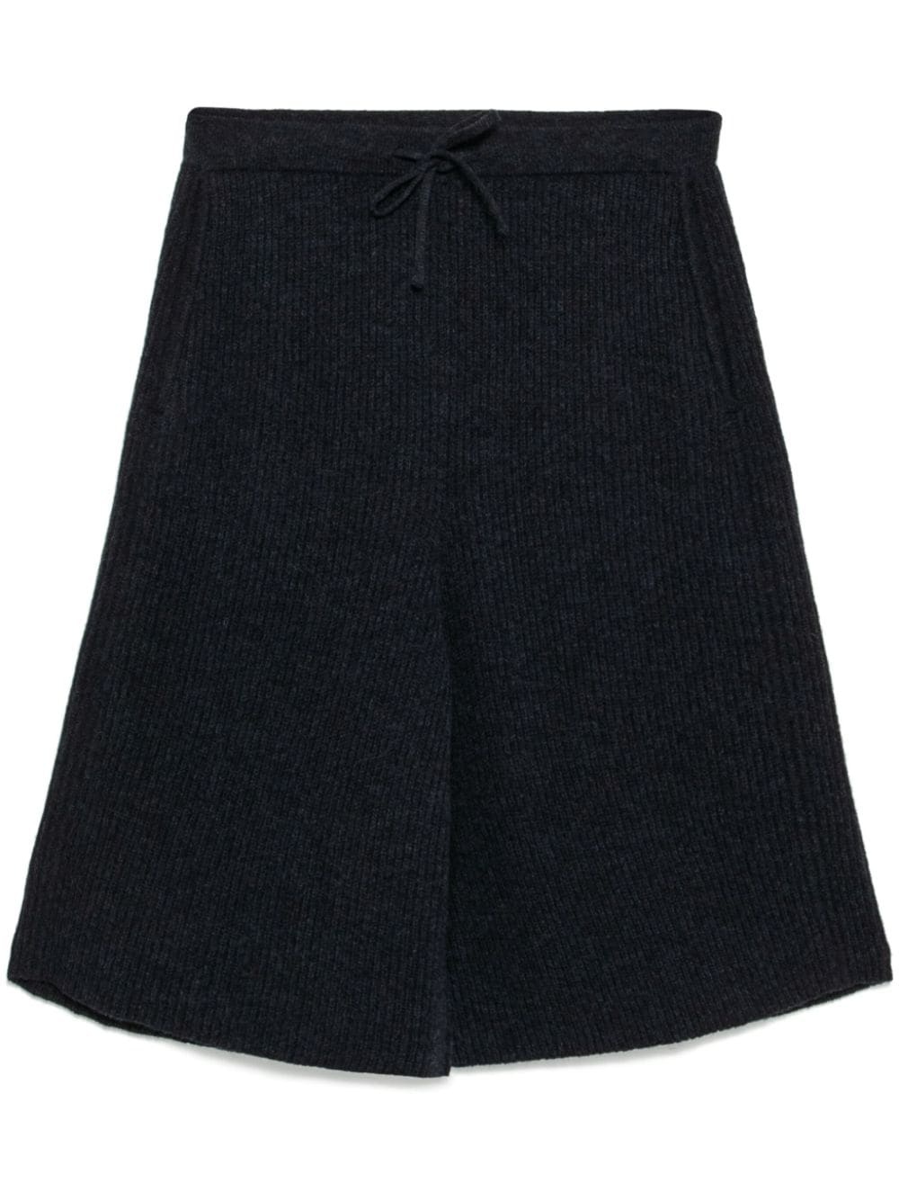 bermuda wool shorts Highlights - Navy blue - Wool - Ribbed knit - Brushed finish - Elasticated waistband with drawstring - Two side slash pockets - Wide leg - Knee-length Made in Italy Composition Wool 100% SIZE & FIT Model measurements Height 5 ft 10 in(1.77 m) Bust/Chest 31.49 in(80 cm) Hips 35.43 in(90 cm) Waist 25.19 in(64 cm) FittingInformation Designed with a wide-leg cut, these trousers allow for a close fit at the waist and offer a loose and roomy fit over the leg Made with a midweight knit, this piece offers some stretch