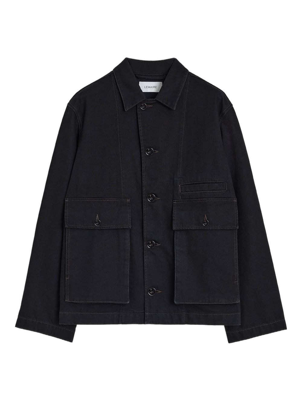 boxy denim jacket Highlights - Black - Cotton - Button closure - Shirt collar - Welted chest pocket - Gusseted pockets - Buttoned cuffs Imported Composition Denim 100% Washing instructions Read Manufacturer Guidelines
