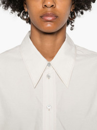button-down long-sleeve shirt Highlights - Light cream - Long sleeves - Button fastening - Collared neck - Curved hem Imported Composition Cotton 80%, Silk 20% SIZE & FIT Model measurements Height 5 ft 10 in(1.77 m) Bust/Chest 33.07 in(84 cm) Hips 37 in(94 cm) Waist 24.8 in(63 cm) Washing instructions Dry Clean Only