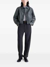buttoned-up elasticated leather jacket