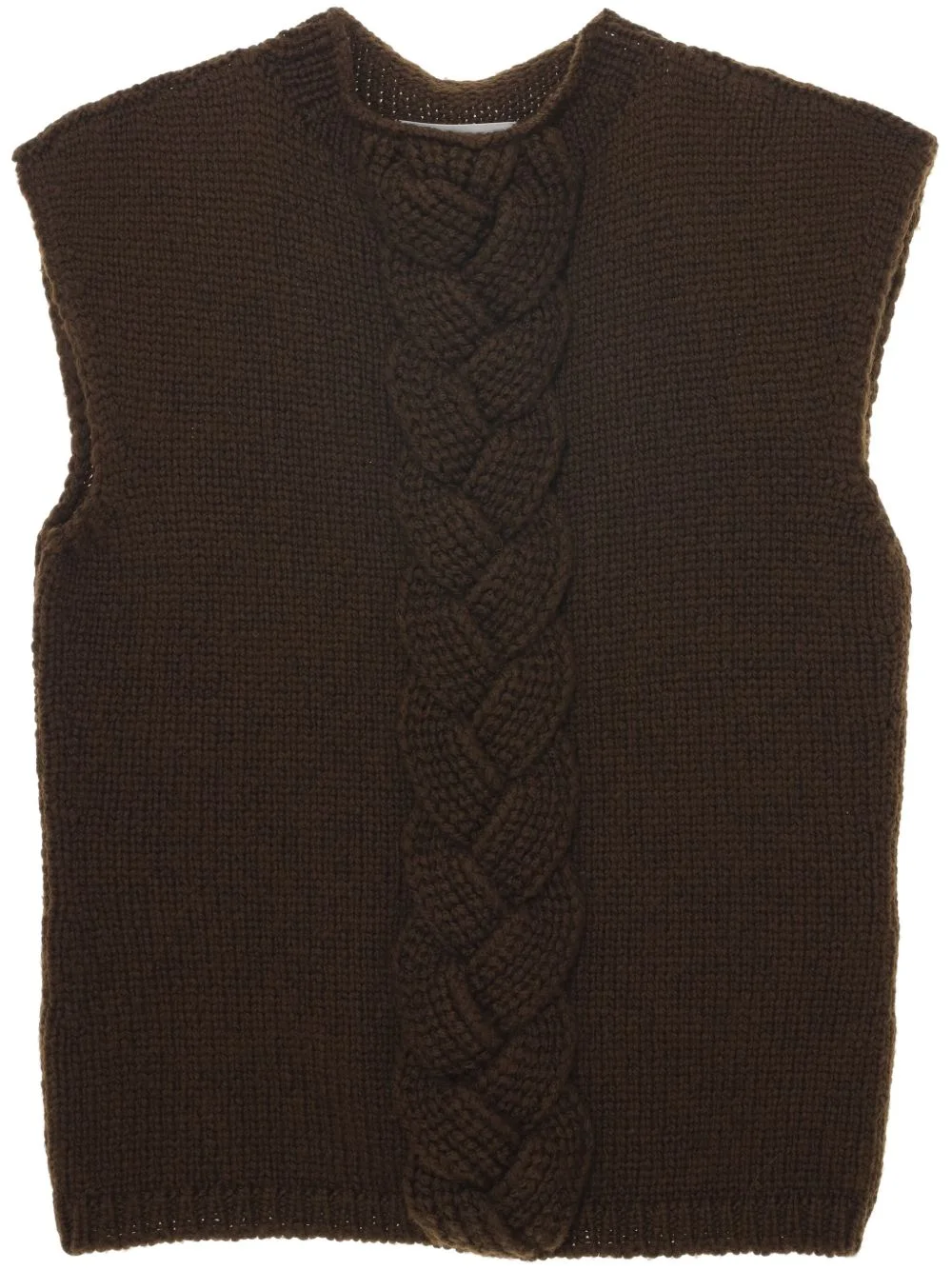 cable-knit vest Highlights - Cedar brown - Wool blend - Cable knit - Crew neck - Sleeveless - Ribbed trim - Straight hem Made in Italy Composition Wool 90%, Polyamide 10%