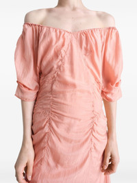 chiffon midi dress Highlights - Coral pink - Concealed side zip fastening - Off-shoulder - Short sleeves - Elasticated trim Imported Composition Fabric 100% Washing instructions Read Manufacturer Guidelines
