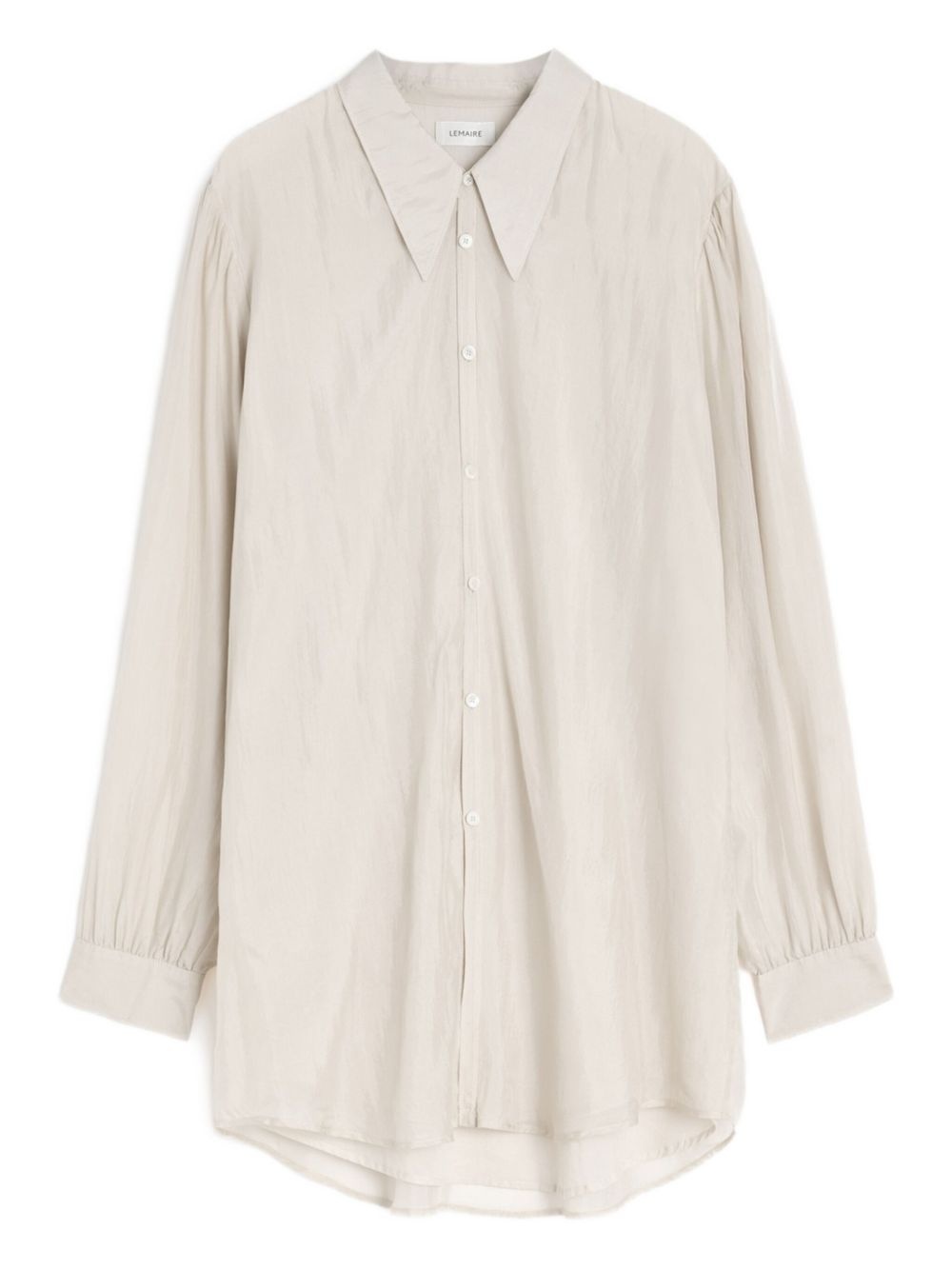 chiffon shirt Highlights - Light beige - Front button fastening - Pointed flat collar - Long sleeves - High-low hem Imported Composition Outer: Silk 100% Lining: Cotton 100%