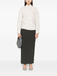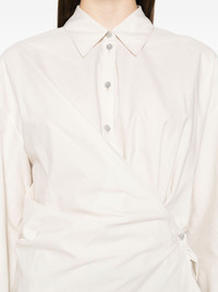 classic-collar twisted shirt Highlights - Light cream Imported Composition Cotton 80%, Silk 20% SIZE & FIT Model measurements Height 5 ft 10 in(1.78 m) Bust/Chest 33.85 in(86 cm) Hips 36.61 in(93 cm) Waist 26.77 in(68 cm) Washing instructions Dry Clean Only