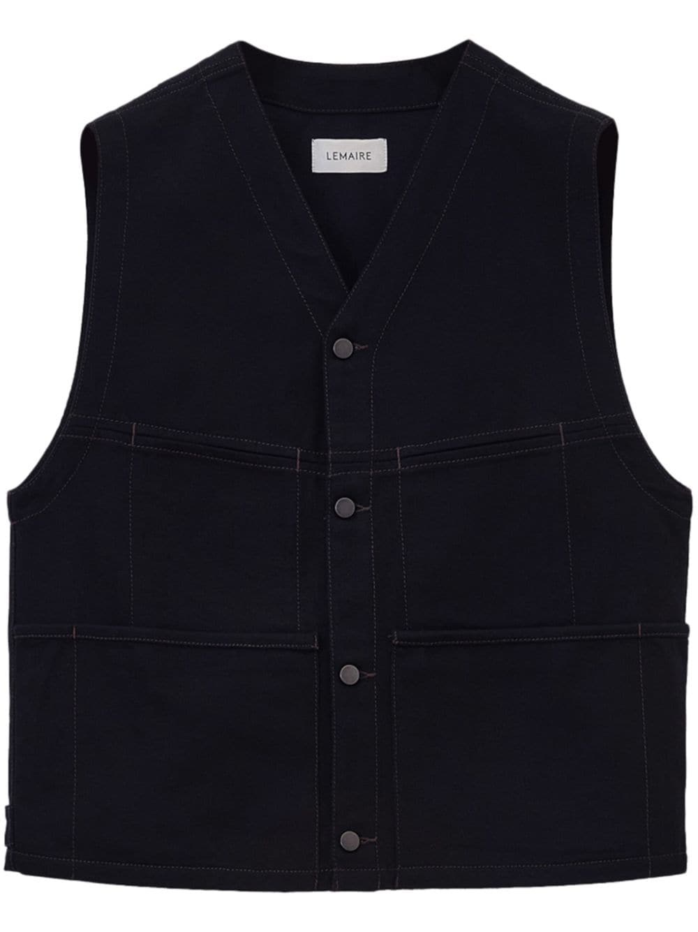 collarless v-neck cotton gilet Highlights - Black - Cotton - V-neck - Front button fastening - Sleeveless - Two front patch pockets Made in Italy Composition Cotton 100%