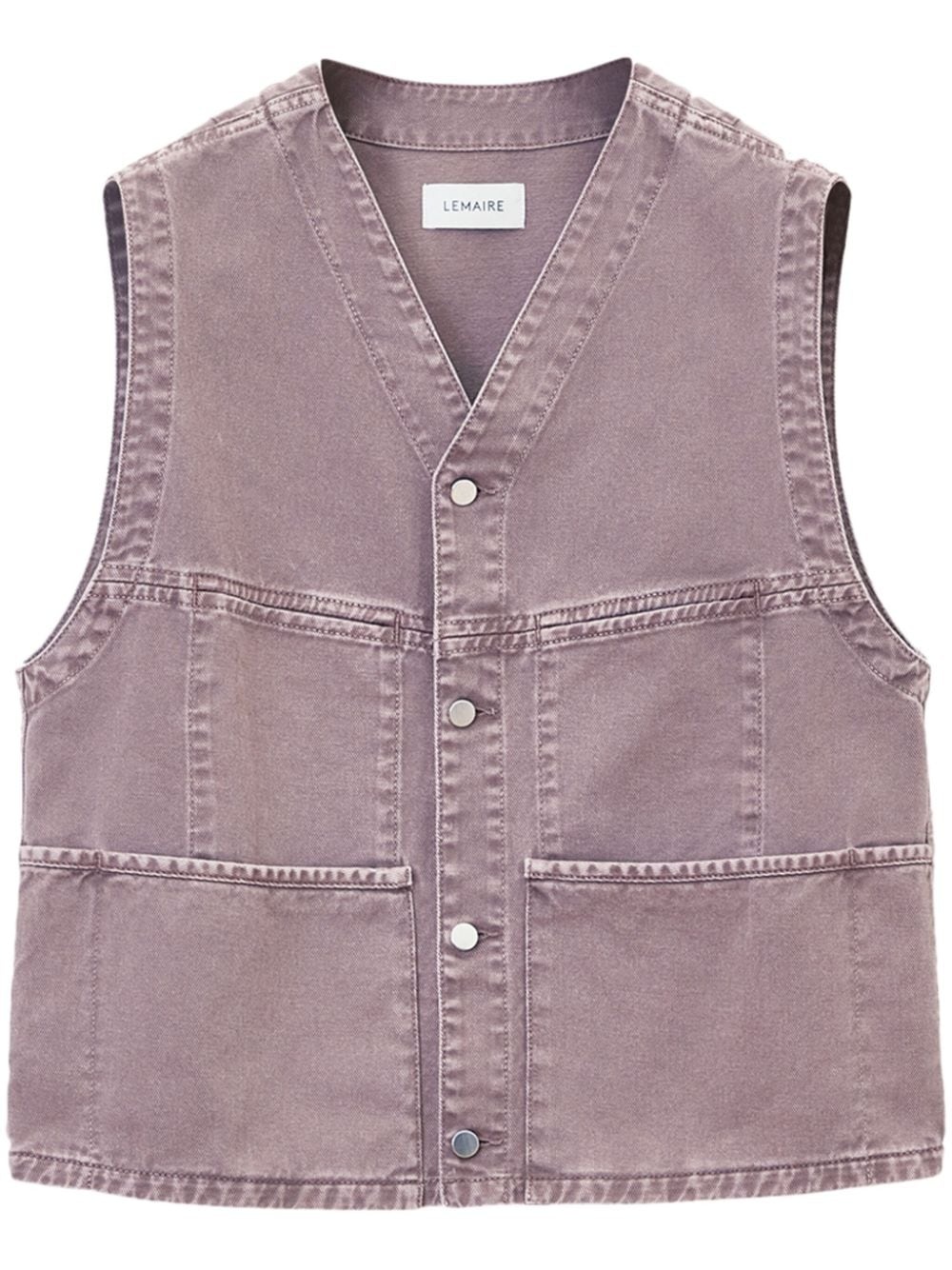 collarless v-neck denim gilet Highlights - Mauve - Denim - V-neck - Front button fastening - Sleeveless - Two front patch pockets Made in Italy Composition Denim 100% Washing instructions Read Manufacturer Guidelines