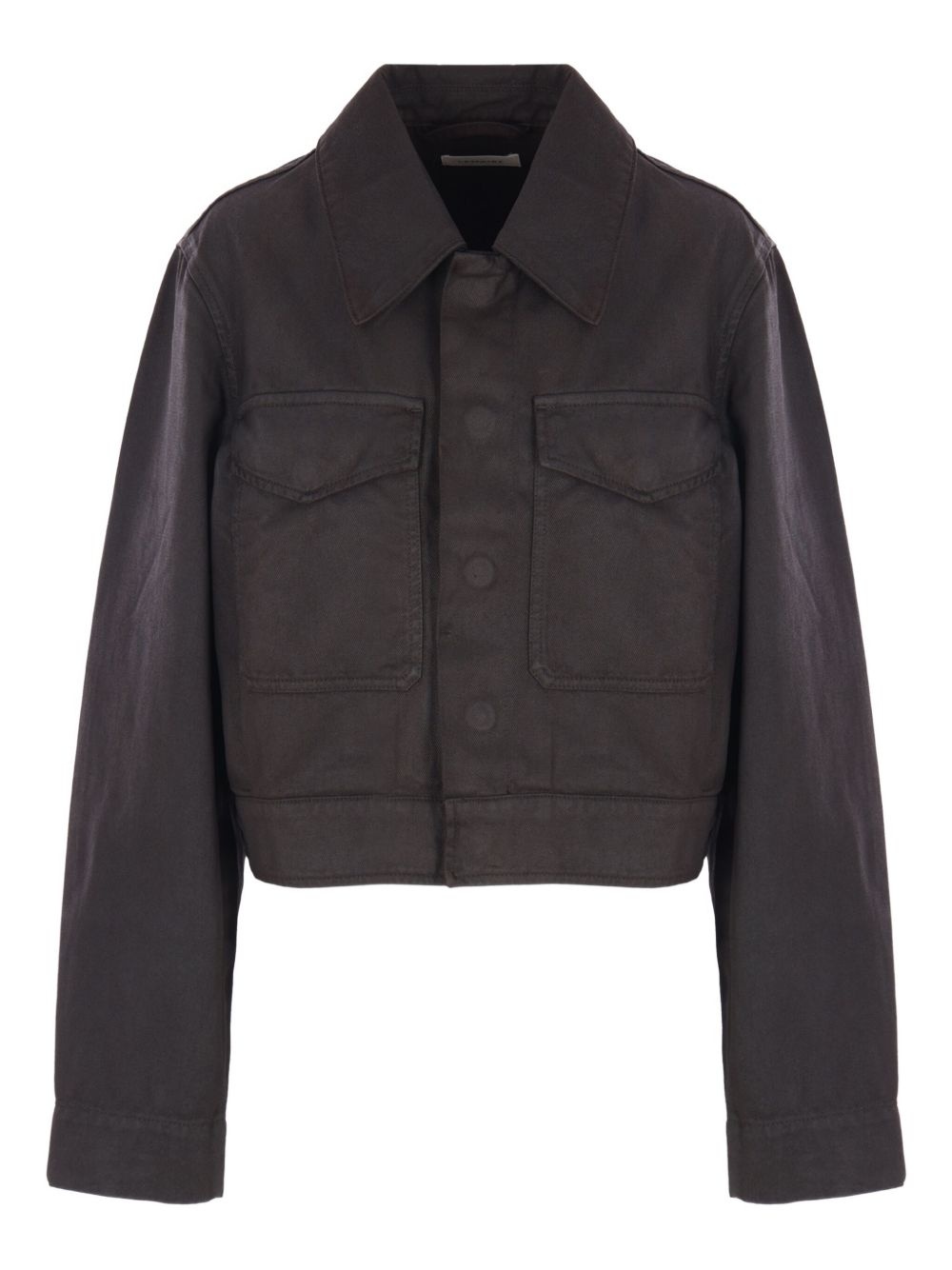 cotton denim jacket Highlights - Chocolate brown - Concealed front button fastening - Two front flap pockets - Long sleeves - Cropped Imported Composition Cotton 100% Washing instructions Read Manufacturer Guidelines