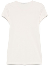 cotton T-shirt Highlights - Light beige - Crew neck - Short sleeves Imported Composition Cotton 100% SIZE & FIT Model measurements Height 5 ft 10 in(1.78 m) Bust/Chest 33.46 in(85 cm) Hips 36.22 in(92 cm) Waist 23.22 in(59 cm) FittingInformation Designed for a slim fit that sits just away from the body offering a close yet comfortable fit Made from a midweight non-stretch fabric, this piece offers minimal elasticity when worn