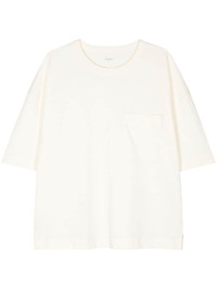 crew-neck jersey T-shirt Highlights - Ivory white - Cotton - Jersey texture - Crew neck - Drop shoulder - Short sleeves - Chest patch pocket - Short side slits - Straight hem Imported Composition Cotton 100% SIZE & FIT Measurement SLEEVE LENGTH 25 in(63.5 cm) LENGTH 29.52 in(75 cm) FittingInformation Designed for an oversized fit, offering additional room throughout Made from a midweight non-stretch fabric, this piece offers minimal elasticity when worn