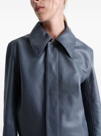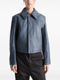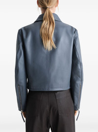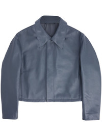cropped jacket Highlights - Blue-grey - Concealed front press-stud fastening - Oversized pointed collar - Cuff zips - Two side slit pockets Imported Composition Leather 100%