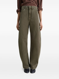 curved jeans Highlights - Green - Curved cut - Concealed front fastening - Belt loops - Side pockets Imported Composition Cotton 100% Washing instructions Read Manufacturer Guidelines