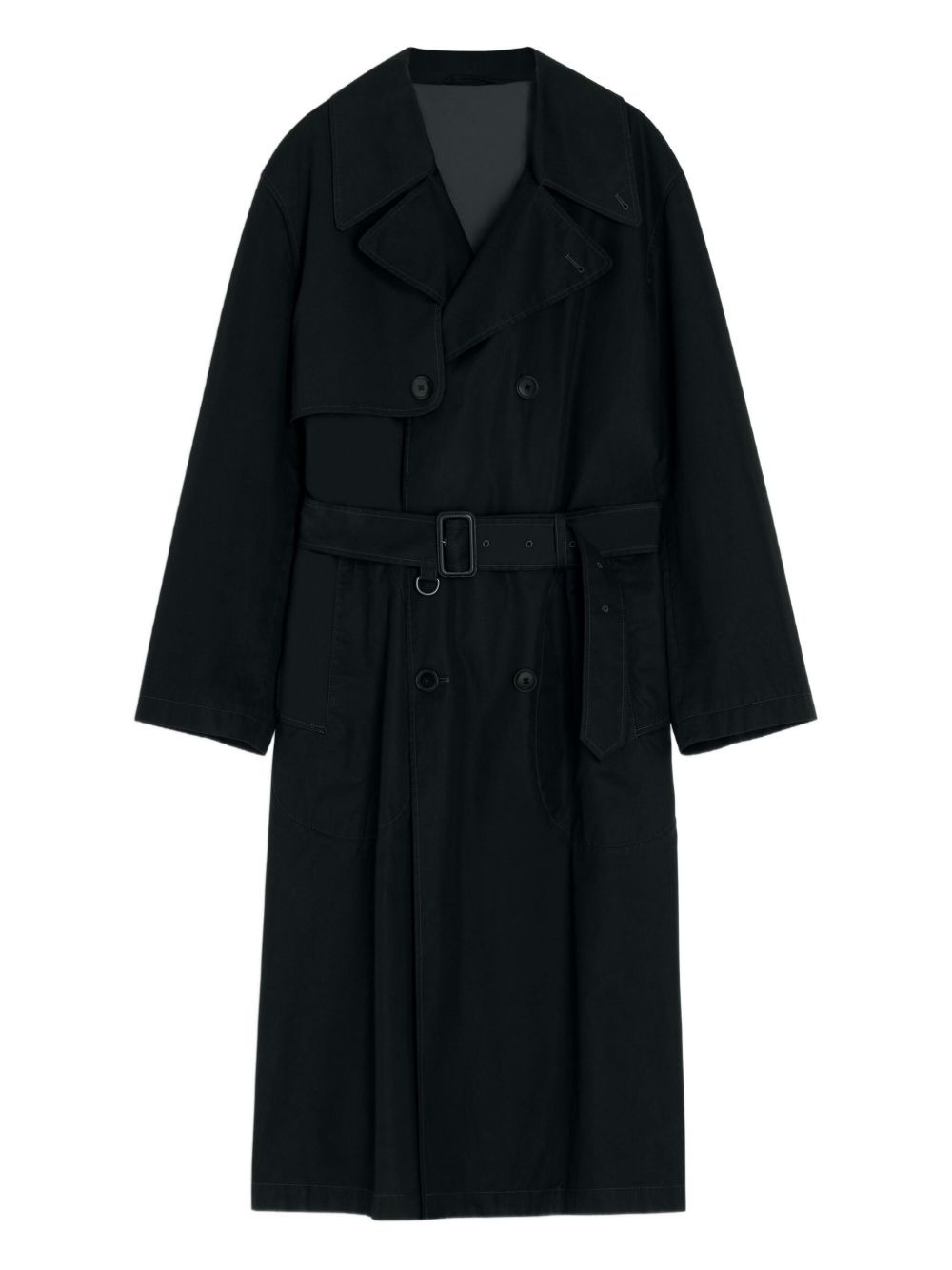 double-breasted belted trench coat Highlights - Black - Double-breasted closure - Trench collar - Buttoned storm flap - Removable belt Imported Composition Fabric 100% Washing instructions Read Manufacturer Guidelines