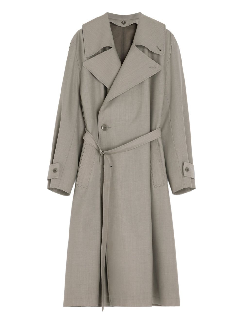 double-breasted belted trench coat Highlights - Light taupe - Double-breasted button closure - Long sleeves button tabs - Removable belt - Back vent Imported Composition Fabric 100% Washing instructions Read Manufacturer Guidelines
